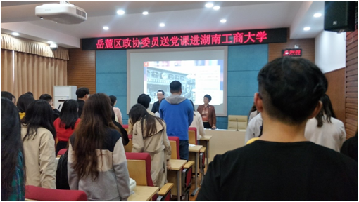 11月5日15:00,工商管理学院全体学生党员及预备党员在三教学楼E305进行了党课学习。本次党课是由长沙市岳麓区政协党组副书记、副主席曾高杰主讲,由工商管理学院党委副书记张楚文主持。